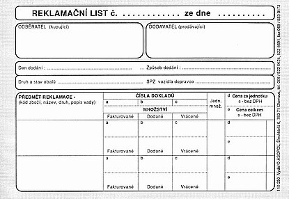 Reklamační listy A5 oboustranné 50 l.skladem65,38 Kč/ ks54,03 Kč bez DPH